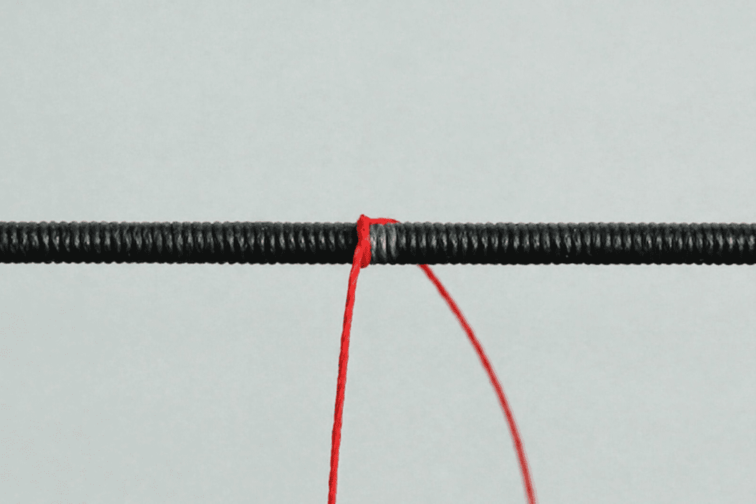 El método más popular y resistente consiste en hacer una serie de nudos simples dobles, primero por encima y luego por debajo del hilo, cinco veces seguidas. Para terminar, haz dos nudos simples entre los dos últimos nudos del lado opuesto para asegurarla. Ten cuidado de colocar el primer nudo simple entre los dos nudos simples para evitar que sobresalga.